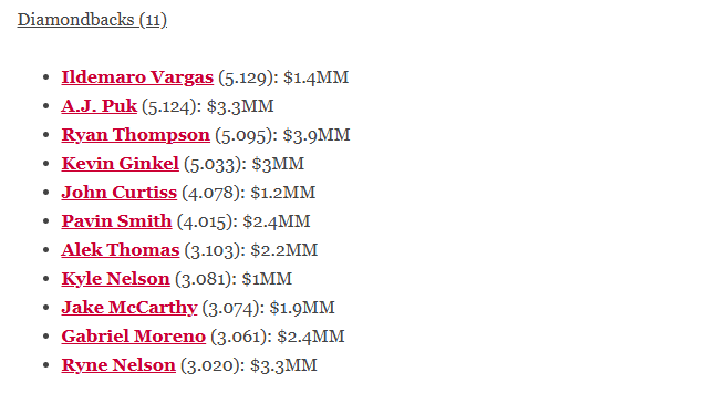 The D-backs already have $102.738 million locked up in payroll for the 2026 season, according to Cots Contracts. The total of his 11 arbitration-eligible players adds up to $26 million. With those two figures, we can project a $128.738 million payroll for now until these cases are settled.