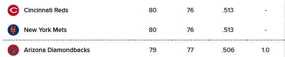 Entering play on September 23rd, the D-backs are just a game back of both the Cincinnati Reds and New York Mets. Of the three teams, the Reds are the only one who control their playoff destiny. That makes them the primary threat to Arizona's miraculous bid to make the postseason.